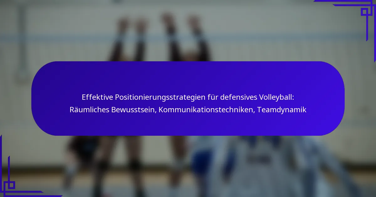Effektive Positionierungsstrategien im defensiven Volleyball hängen von räumlichem Bewusstsein, Kommunikationstechniken und starken Teamdynamiken ab. Durch das Beherrschen der Platzierung auf dem Feld und das Antizipieren der Bewegungen der Gegner können Spieler ihre defensive Effektivität erheblich steigern. Klare Kommunikation unter den Teamkollegen fördert die Koordination und Reaktionsfähigkeit, während eine kohäsive Teamdynamik die Gesamtleistung während der Spiele weiter erhöht.