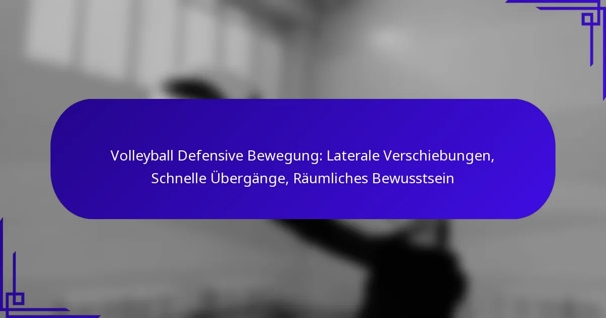 Effektive defensive Bewegungen im Volleyball basieren auf drei Schlüsselkomponenten: seitlichen Verschiebungen, schnellen Übergängen und räumlichem Bewusstsein. Seitliche Verschiebungen ermöglichen es den Spielern, ihre Position schnell als Reaktion auf den Ball anzupassen, wodurch ihre Fähigkeit, den Platz abzudecken, verbessert wird. Schnelle Übergänge sind entscheidend für die Aufrechterhaltung einer soliden Verteidigung, da sie es den Spielern ermöglichen, sich rasch zwischen offensiven und defensiven Rollen anzupassen. Gleichzeitig sorgt das räumliche Bewusstsein dafür, dass die Spieler Spielzüge antizipieren und effizient reagieren können, wodurch ihre defensiven Strategien auf dem Feld optimiert werden.